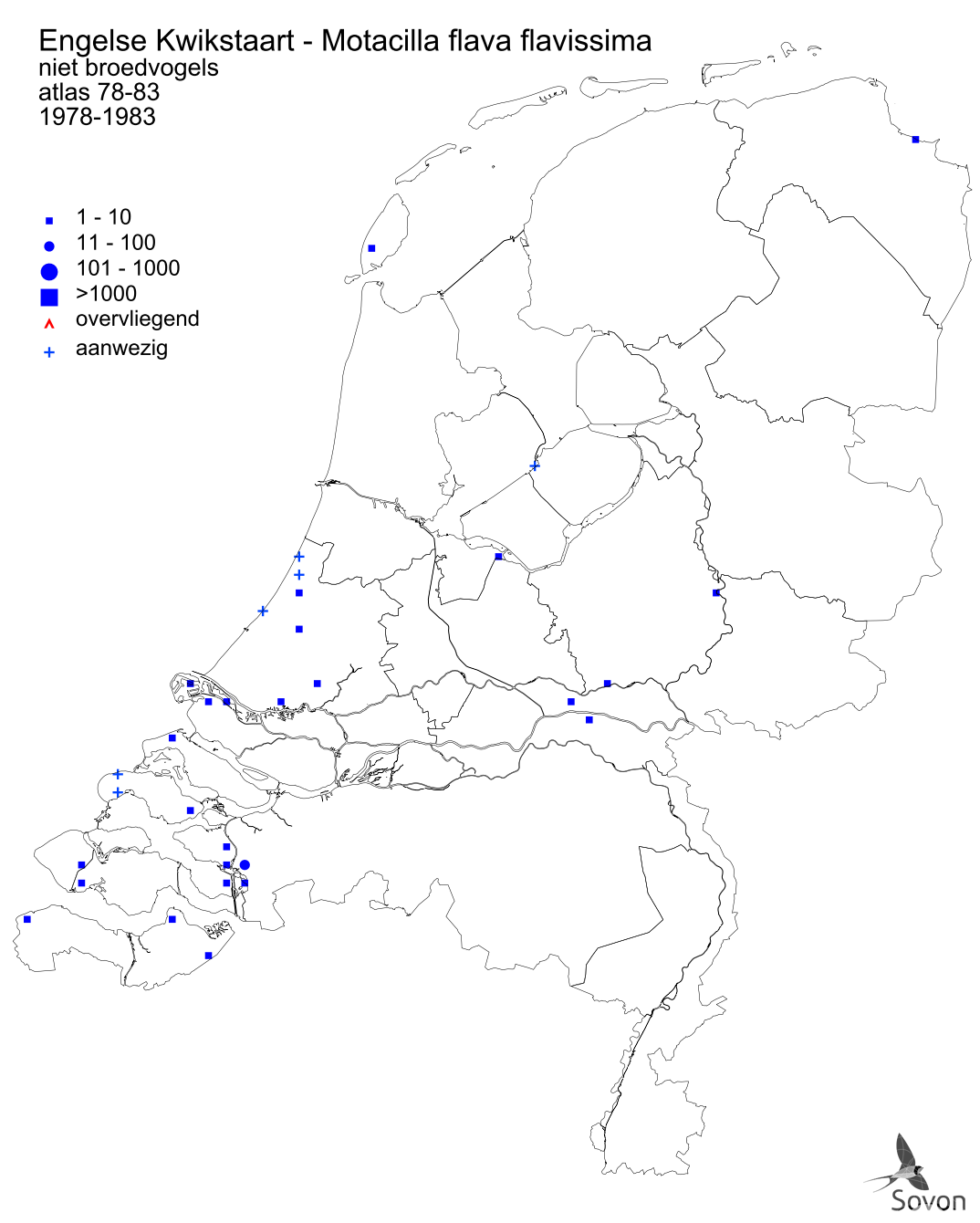 Deze kaart is gebaseerd op de Atlas van de Nederlandse Vogels (1987). Per atlasblok van 5x5 km wordt een schatting van de aanwezige aantallen gegeven.