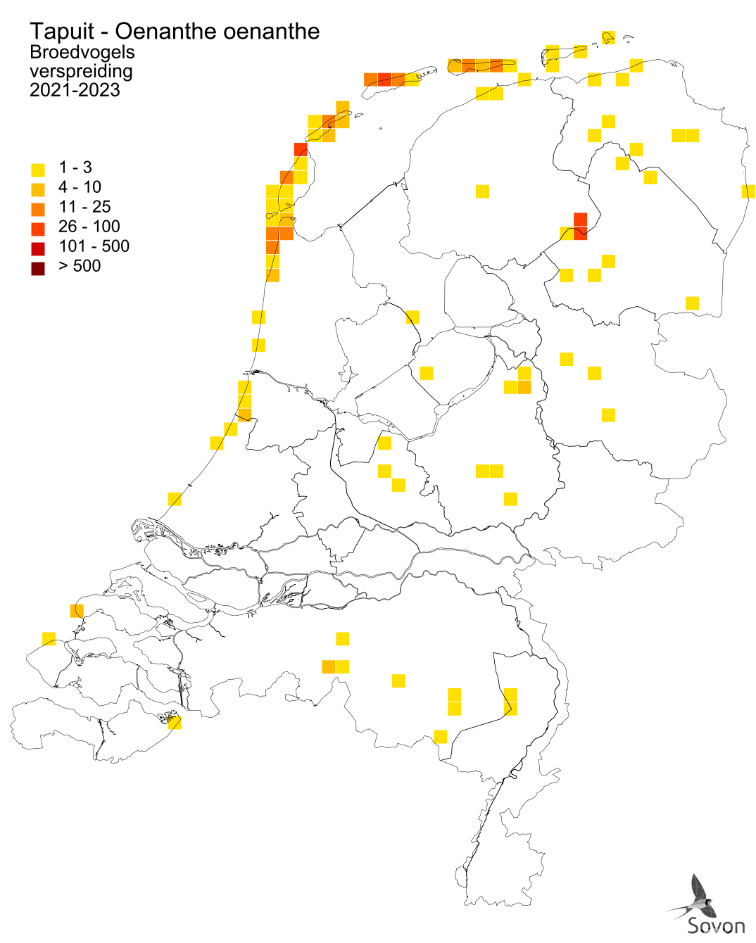 The Northern Wheatear is protected under the European Birds Directive and the Nature Conservation Act. Natura 2000 areas in the Netherlands have been designated as breeding bird for this species.