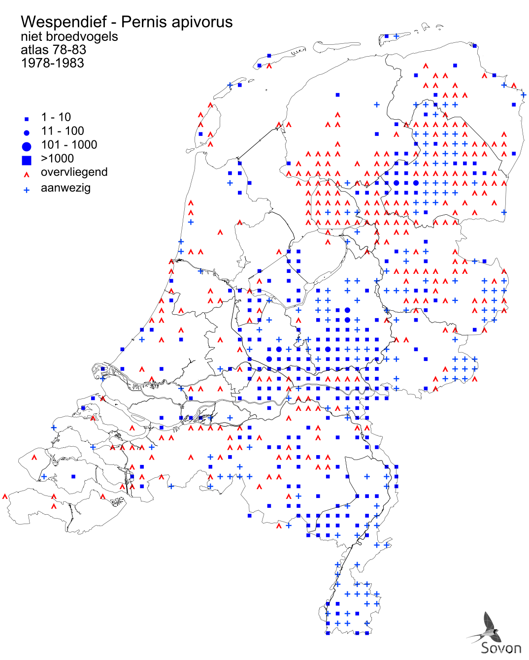 Deze kaart is gebaseerd op de Atlas van de Nederlandse Vogels (1987). Per atlasblok van 5x5 km wordt een schatting van de aanwezige aantallen gegeven.
