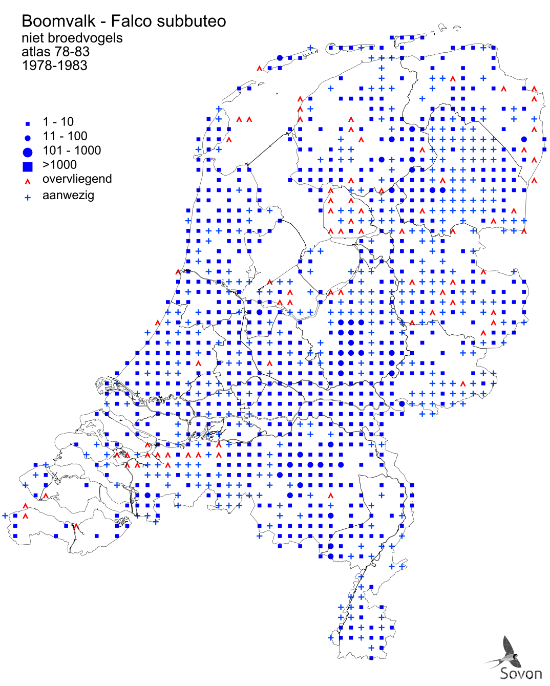 Verplaatsingen meer dan 1 km in periode van vestiging normaal; controleer dus of schijnbaar gevonden nestplaats daadwerkelijk bewoond is. Aanwezigheid van op insecten jagende Boomvalken in broedtijd hoeft niet per se op broedparen te duiden vanwege doortrek (tot eind mei); jagende solitaire vogel of duo op mooie voorjaarsavond duidt op broedpaar; meer dan 2 exemplaren bijeen of overdag op insecten jagende Boomvalken (juni/begin juli) zijn niet met broeden bezig; jachtgebied kan zich uitstrekken tot op grote afstand van het nest.