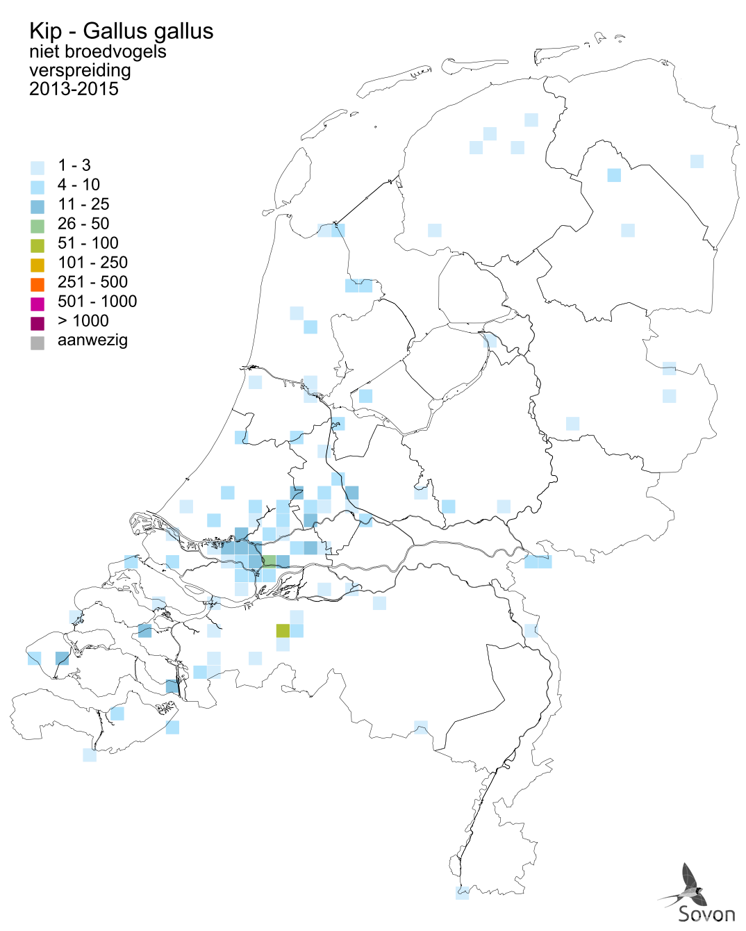 Voor deze soort is geen Staat van Instandhouding van toepassing. De Kip is een exoot en valt daarmee buiten artikel 1 van de Vogelrichtlijn, dat betrekking heeft op alle natuurlijk in het wild levende vogelsoorten op het Europese grondgebied van de EU-lidstaten. De Kip is daarmee ook niet beschermd op grond van de Wet natuurbescherming.