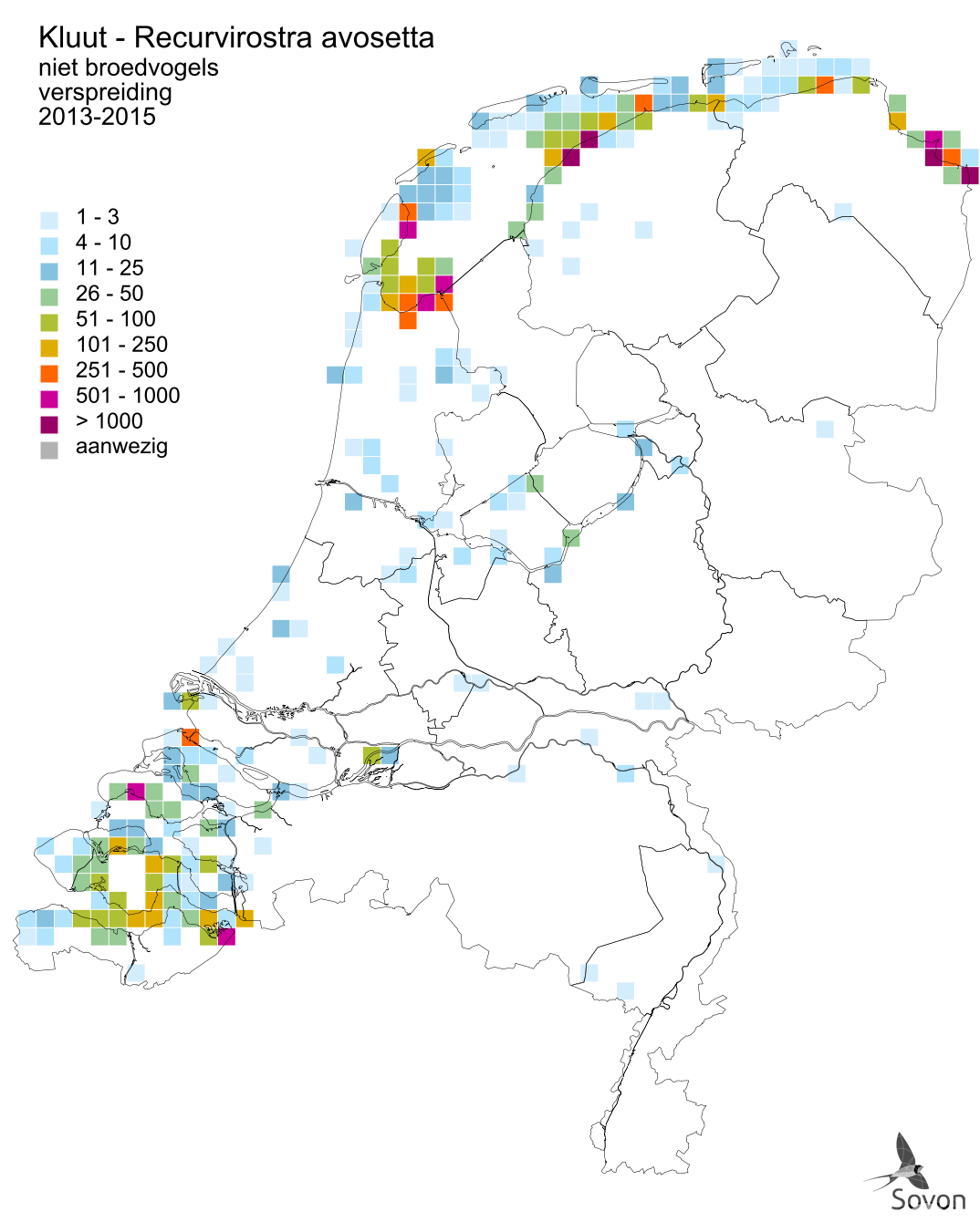 Van juli tot in november verzamelen zich grote aantallen Kluten in het Wadden- en Deltagebied. Slechts een klein deel daarvan blijft overwinteren, en alleen onder milde weersomstandigheden. Vanaf februari (zachte winters) of maart (koudere winters) keren Kluten terug. De landelijk getelde aantallen zijn redelijk stabiel. De achteruitgang van de Nederlandse broedpopulatie, de grootste in Noordwest-Europa, vertaalt zich dus nog niet in duidelijk afnemende aantallen buiten de broedtijd.
