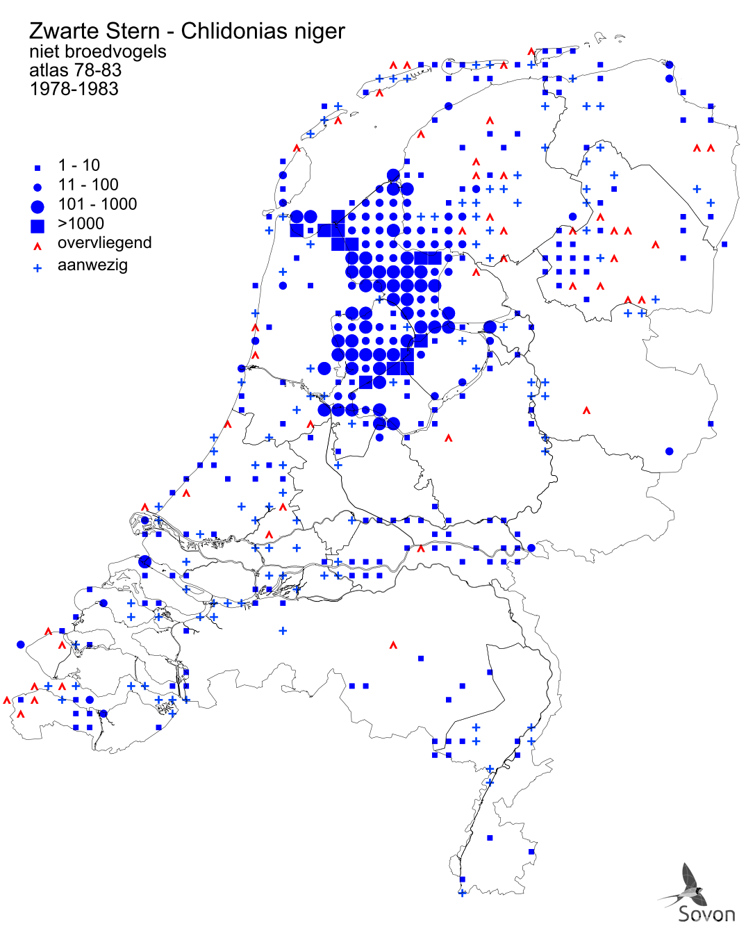 In Nederland is de Zwarte Stern de algemeenste van de drie Europese moerassterns. Witvleugelstern en Witwangstern broeden incidenteel in ons land. Wees attent op de mogelijke aanwezigheid van deze soorten. De nesten en eieren van Zwarte Stern en Witvleugelstern zijn in het veld niet van elkaar te onderscheiden.